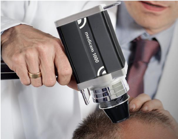 Trichoskopía to nieinwazyjne, bezbolesne badanie skóry głowy i włosów wykonywane za pomocą dermoskopu lub wideodermoskopu.